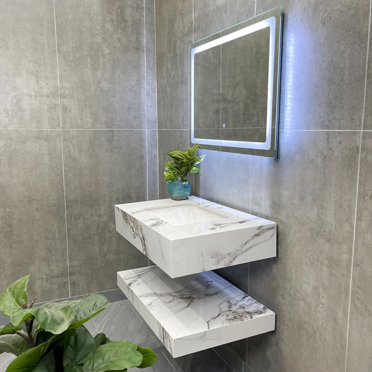 Bàn đá Lavabo trắng vân đá