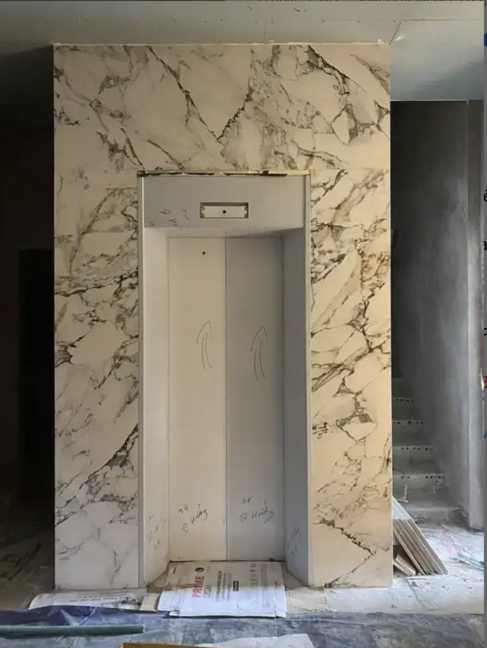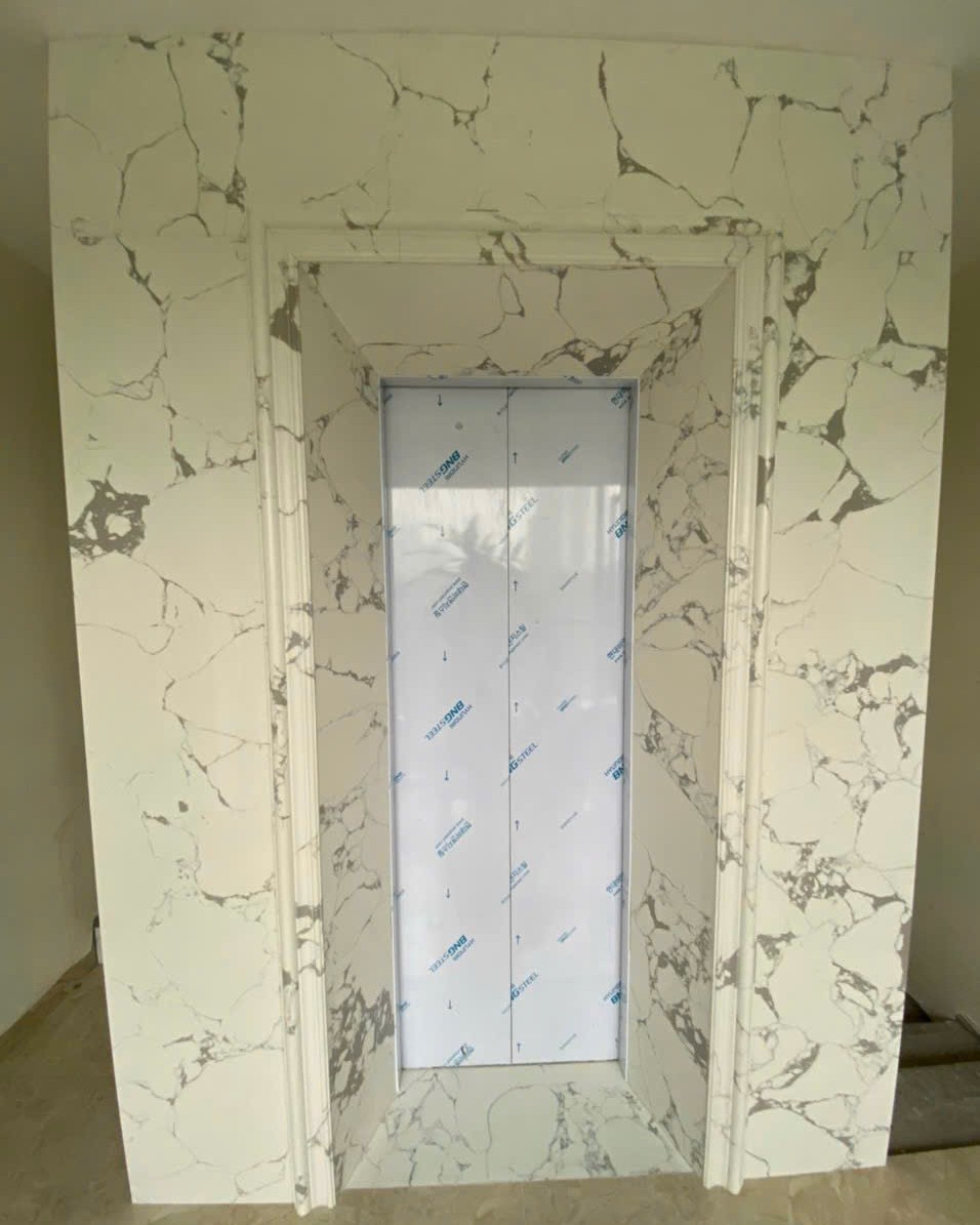 ⭐ 3. Ứng dụng của đá nhân tạo trắng vân trong thang máy