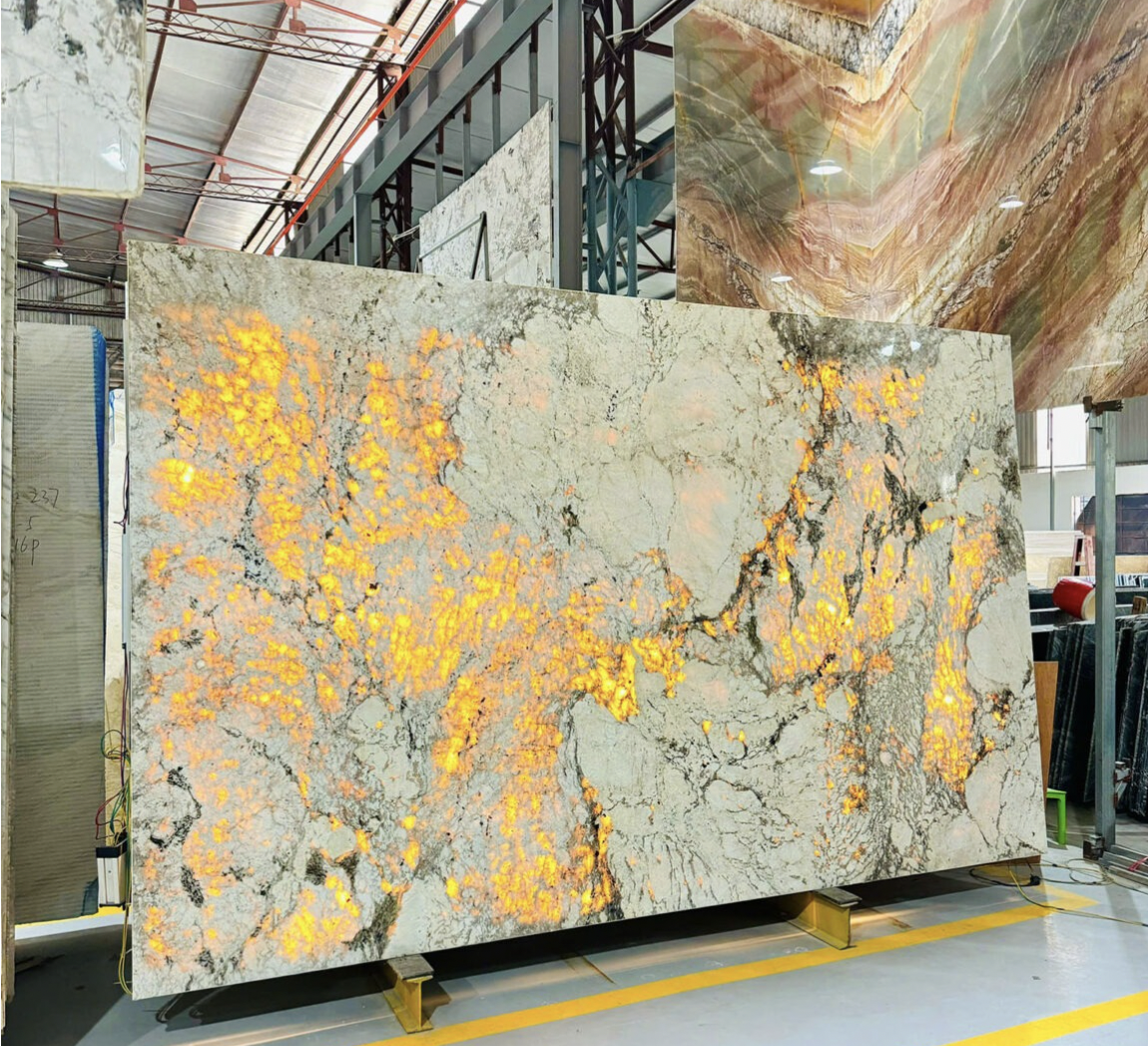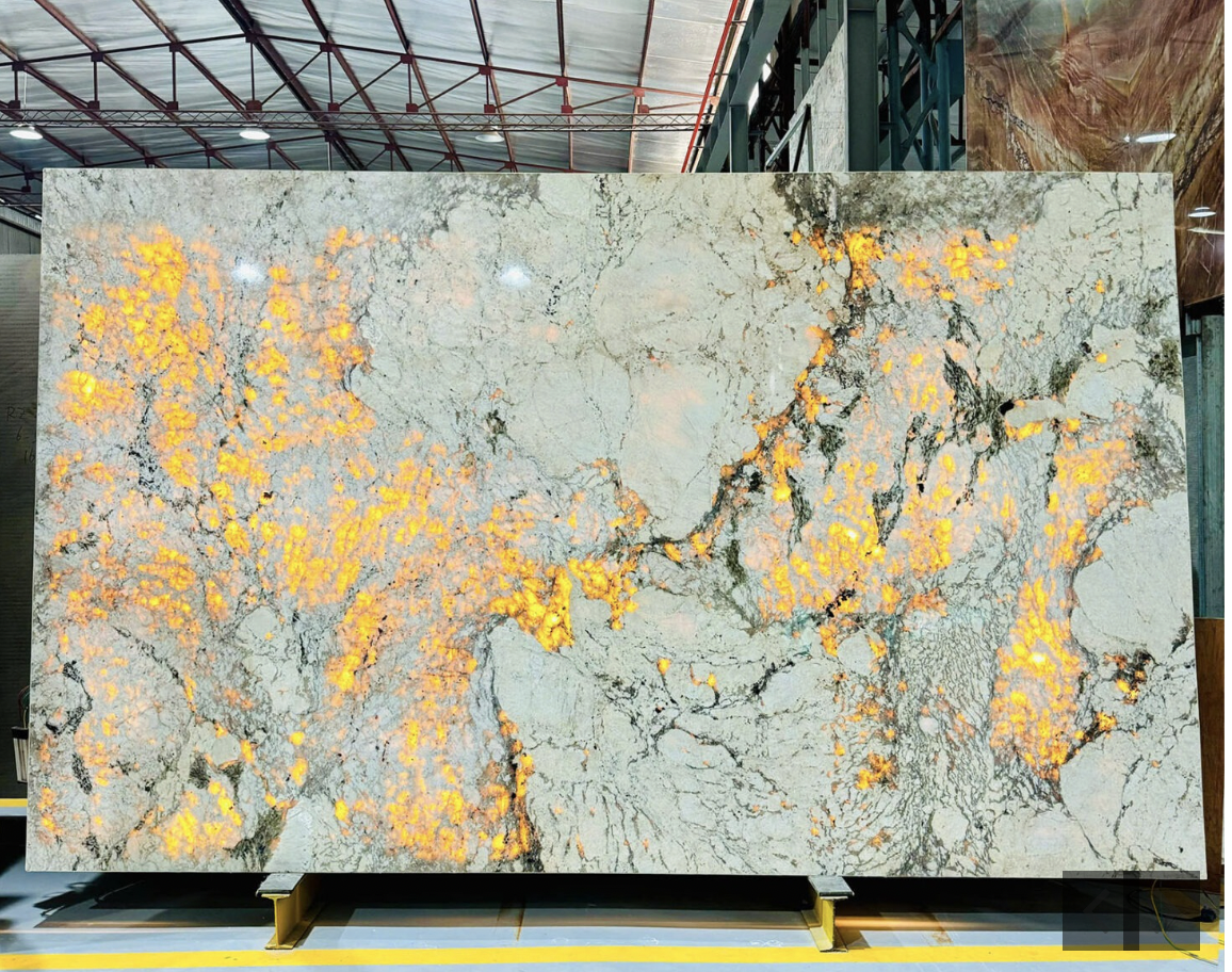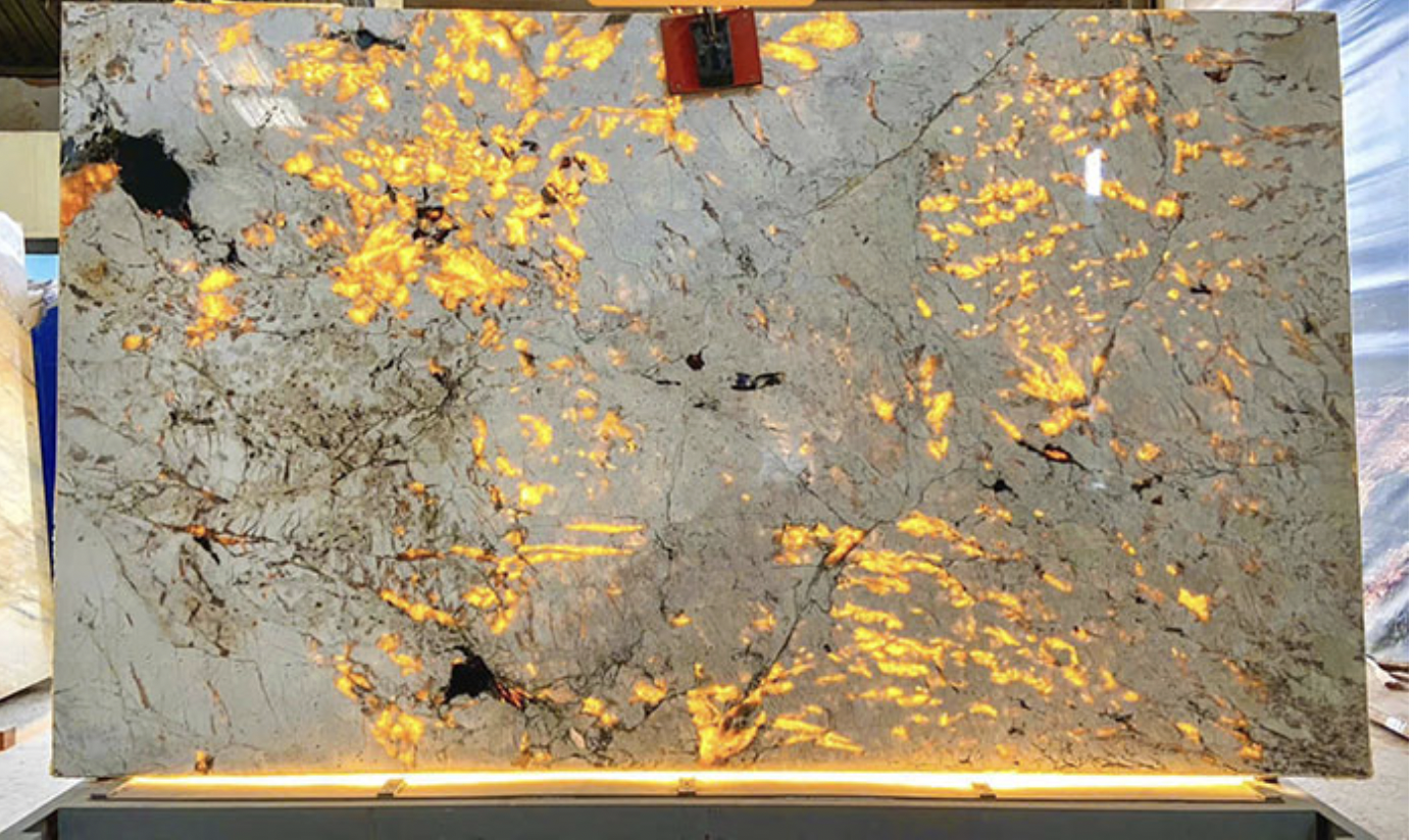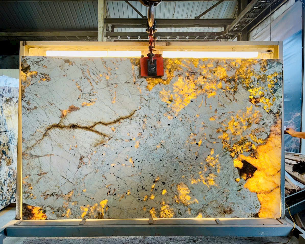 Đặc biệt, khi kết hợp ánh sáng LED gián tiếp hoặc xuyên sáng, Granite Monalisa càng trở nên lung linh, cuốn hút và sang trọng.