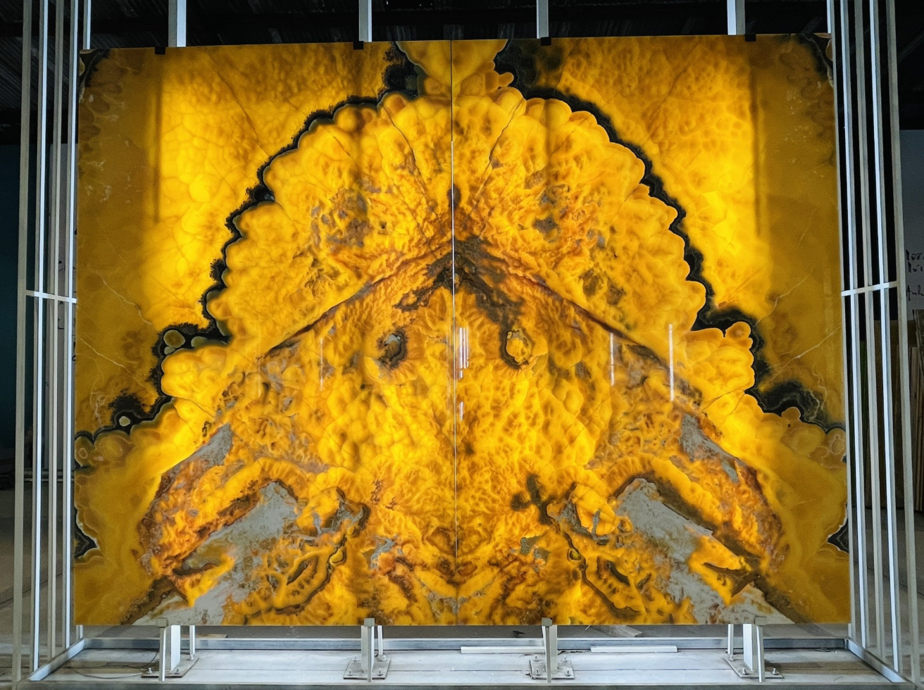 Mỗi tấm đá Onyx vàng giống như một bức tranh thiên nhiên, mang giá trị thẩm mỹ vượt thời gian.
