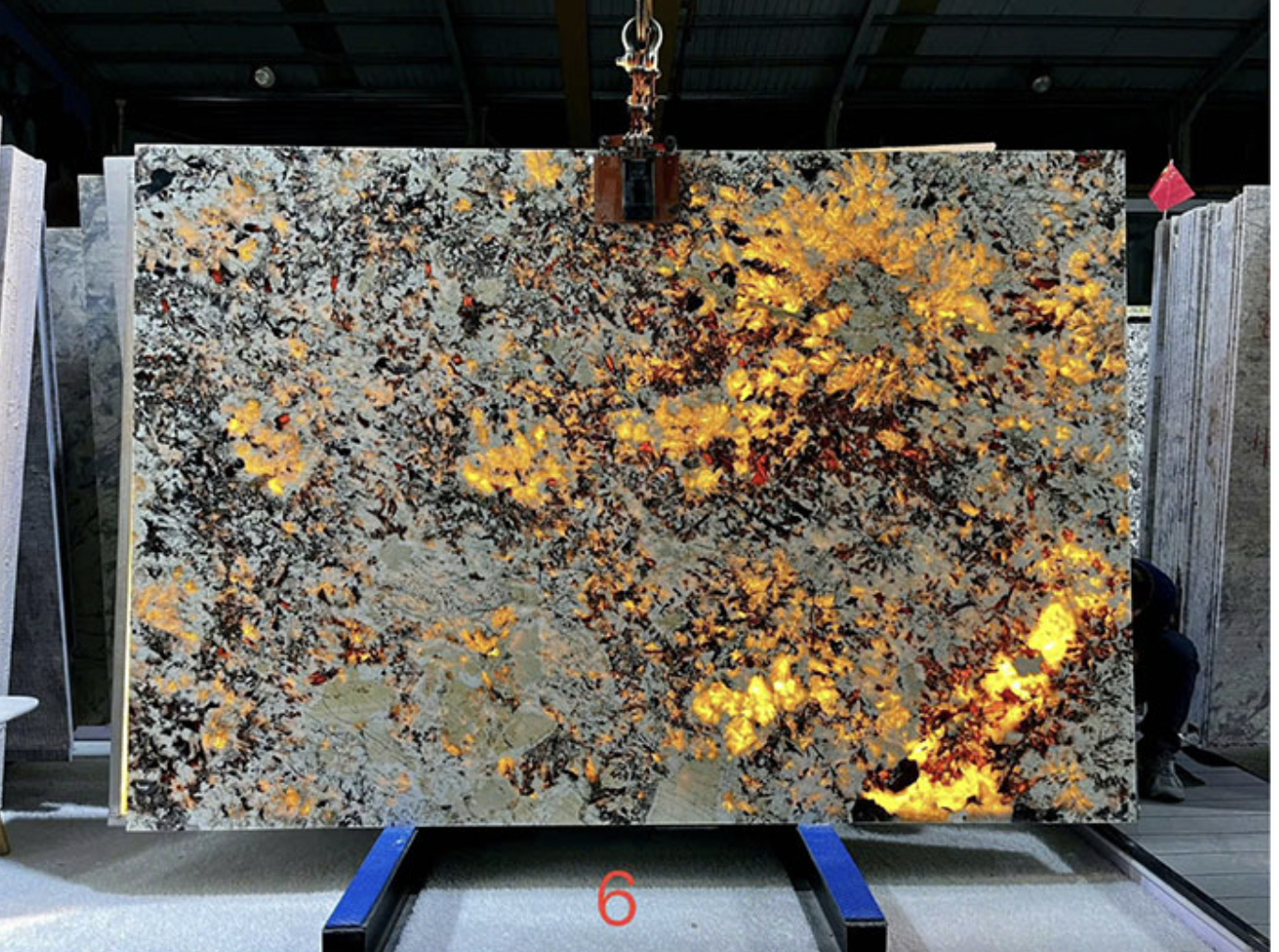 Với kích thước 291 x 197 cm, 1 tấm đá đơn hoặc ghép 2 tấm đối xứng, bề mặt vân đá tự nhiên cực độc đáo, hiệu ứng xuyên sáng mạnh mẽ, đây là sản phẩm được nhiều kiến trúc sư lựa chọn cho vách tivi, vách sau sofa, phòng khách sang trọng, biệt thự, penthouse.