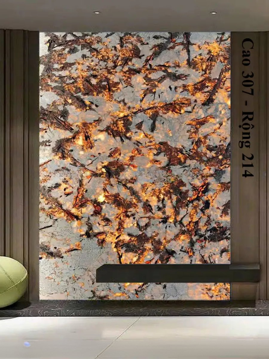 Tranh đá xuyên sáng hoa anh đào là dòng sản phẩm đá tự nhiên cao cấp được tuyển chọn dành riêng cho các không gian nội thất sang trọng. Với hiệu ứng xuyên sáng độc đáo, từng đường vân đá sống động như một bức tranh nghệ thuật – mang lại cảm giác vừa hiện đại, vừa đậm chất Á Đông. Đặc biệt, mẫu tranh này được chế tác từ đá Granite tự nhiên nhập khẩu Ấn Độ, nổi tiếng về độ cứng, khả năng xuyên sáng ổn định và độ bền vượt trội theo thời gian.